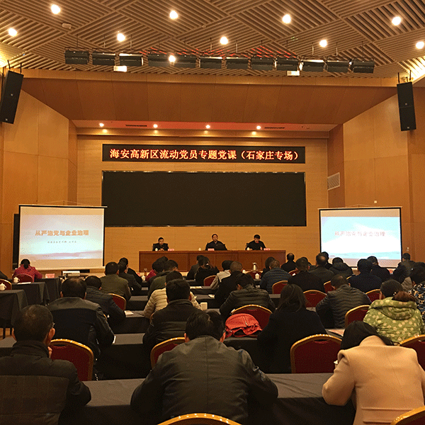 海安縣委組織部聯合高新區黨工委,邀請南通市委宣傳部特聘兼職講師、海安金牌講師,縣委宣傳部副部長、縣社科聯主席劉萬春,為80多名在石家莊的黨員和入黨積極分子集中上專題黨課,進行黨員干部冬訓傳播理論輔導講座。縣委組織部組織員辦季然主持報告會。