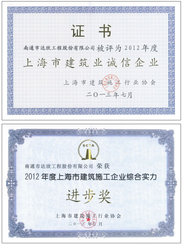 上海市建筑業誠信創建以及綜合實力排名活動是由上海市建筑施工行業協會在上海市建筑業管理辦公室的指導下,組織對上海市建筑施工企業和進滬建筑施工企業誠信建設和綜合實力的評價。根據《上海市建筑施工企業誠信建設行業評價試行辦法》、《上海市建筑施工企業綜合實力排名辦法》、2012年度企業誠信建設相關考核、《指標體系及評分標準》等相關考核內容,經企業自愿申報,協會秘書處初審,征詢相關主管部門意見,上網公示,最后提請上海市建筑施工企業誠信建設行業評價委員會審定后方可獲此殊榮。