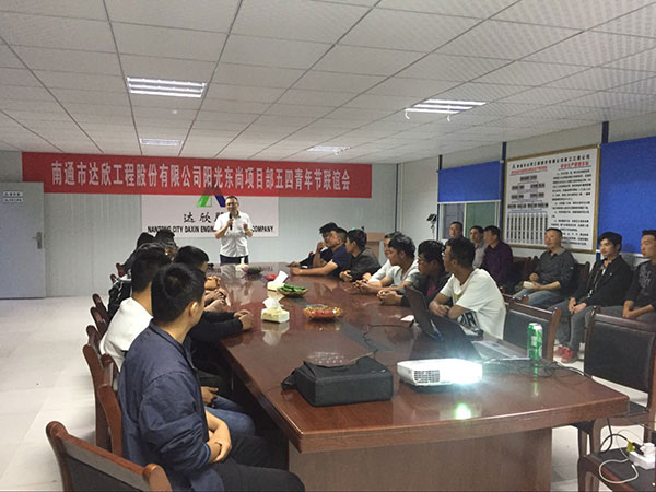 5月4日,第三工程公司陽光東尚項目青年聯誼會,在一曲優美動聽的“年輕的朋友來相會”歌聲中開始。項目總指揮吉成斌主持聯誼會,向常年奮斗在施工一線青年人致以節日的問候,并以自已20多年奮斗的歷程,寄語年輕的員工,“青年是希望,你們是未來,奮斗的青春最美麗”。