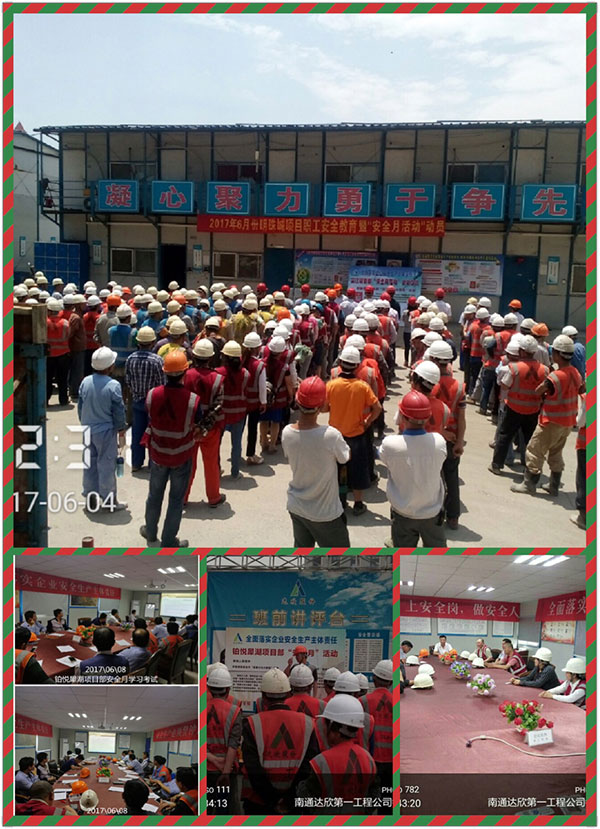 為貫徹落實集團公司《關于開展2017年“安全生產月”和“安全生產萬里行”活動的通知》文件精神,第一工程公司于6月2-7日,分別在各項目部召開了“安全生產月”活動宣貫會,要求各項目部通過多種形式,扎實開展安全生產月活動,全面落實企業安全生產主體責任。