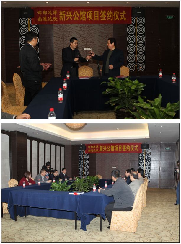 4月10日,遠洋集團地產公司總經理段海山、達欣股份副總經理楊靜在邯鄲市星際美高大酒店進行項目合作簽約儀式。地產公司工程副總李秀山、總工程師李秀峰、工程公司邯鄲總指揮陳仁富等一同參加簽約儀式。