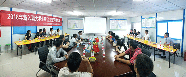 座談會上,新員工們首先進行了簡短的自我介紹,讓大家彼此有了了解。傅海榮同志對新員工的到來表示歡迎,并就第四工程公司的發展歷史、經營現狀、創優情況、人才培養情況做了簡單介紹。隨后,兩名2017年入職員工代表王洋、劉建軍依次發言,總結了過去一年的工作經驗,以切身體會為大學生們未來的工作生活作了實實在在的指引。