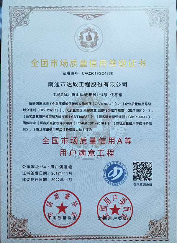 一舉獲得三項殊榮不僅僅是向外界展示了達欣集團在工程建設上的技術實力和精品工程信譽度,更是達欣集團在工程建設中以“質量贏得市場,使企業建立較強的市場競爭力”。