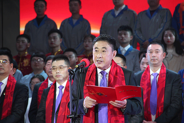集團高管們在澎湃的“我和我的祖國”聲中激情登場,集團董事長馬和軍致辭答謝,他回顧了集團一年來所取得的輝煌成績,感謝社會各界及全體達欣人的努力,并對公司的未來之路描繪了新的發展藍圖。