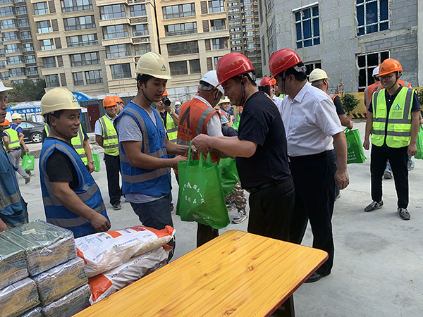 市長于立忠一行為大家送來了毛巾、防暑降溫飲品等消暑物品,感謝大家為建造和諧社會、美好家園在高溫酷暑中依然堅守,為祖國、為家鄉做貢獻,同時也希望大家立足本職工作,繼續發揚特別能吃苦、特別能戰斗的主力軍作風,展現新時期達欣鐵軍隊伍特有的風采,并反復叮囑大家一定要安全施工,合理安排作息時間,勞逸結合,保重身體,做好防暑降溫措施。