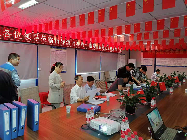 安全員毛張旭就項目在農民工工資支付工作的開展情況,從現場管理到資料留存進行了全面的介紹。隨后,調研組分別對民工的工資支付情況、人數、整體工作年齡、職工待遇、整體文化程度等方面進行了詳細的了解。最后,由項目經理吳慧強和勞資員梁有為陪同檢查組查閱了文件資料。