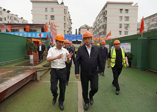 于書記一行首先來到實驗小學在建大樓前,實地查看了項目的施工進展和周圍安全措施等情況,并與項目經理進行了詳細的交流。他指出,實驗小學改擴建項目是年度重要民生工程,自建設起初就受到大眾的關注,建設體量較大,施工復雜,而達欣集團在建設中體現出的不畏艱難的精神難能可貴,他希望達欣繼續保持優良作風,再接再厲,保質保量完成項目建設任務,確保學生們在9月份順利在新的大樓里學習讀書。