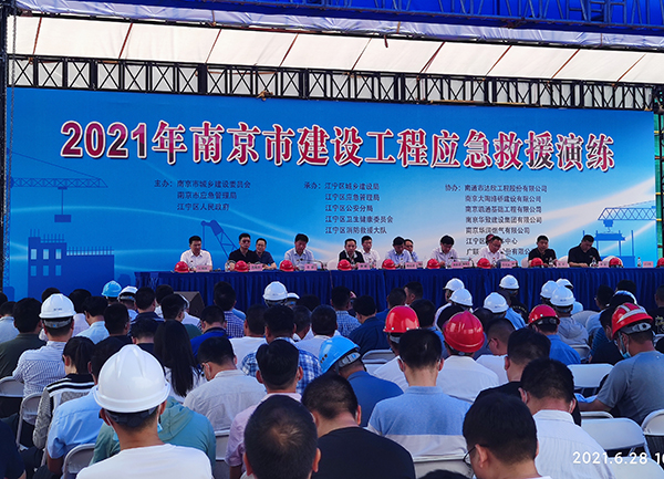 6月28日,由南京市城鄉建設委員會、南京市應急管理局、江寧區人民政府主辦的“南京市建設工程應急救援演練觀摩會”在第二工程公司蘇沃科技園項目部召開。南京市建委副書記朱家祥、南京市安委辦專職副主任韓成頌;江寧區人民政府副區長孫兆金、江寧區城鄉建設局局長易強等領導,全市施工企業、監理單位、建設單位負責人及相關人員等近500余人參加本次活動。集團常務副總經理王邦國主席臺就坐。