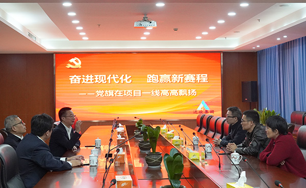 11月19日,南通市委黨史學(xué)習(xí)教育第八巡回指導(dǎo)組副組長(zhǎng)王鵬一行,在海安市宣傳部副部長(zhǎng)徐勇、胡集街道黨工委書(shū)記孫堅(jiān)的陪同下,調(diào)研集團(tuán)“黨旗在項(xiàng)目一線高高飄揚(yáng)”活動(dòng)開(kāi)展情況。集團(tuán)黨委書(shū)記劉厚純參加活動(dòng)。