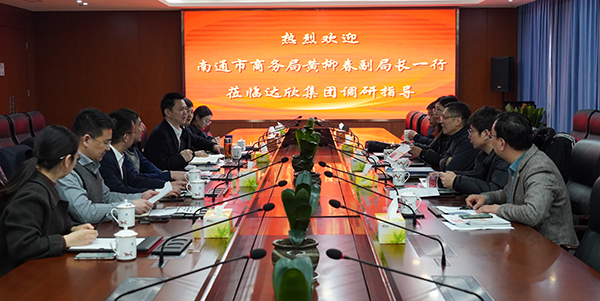 2月24日上午,南通市商務局黨組成員、副局長黃柳春率隊蒞臨達欣集團調研,海安市商務局副書記、副局長史霞兵,集團董事長馬和軍、黨委書記劉厚純、常務副總經理王邦國等陪同。