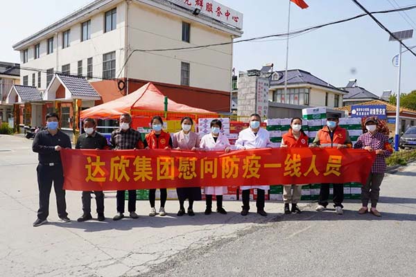 胡集街道黨工委書記孫堅對達欣集團的又一善舉表示感謝。他表示,在抗擊疫情的重要時刻,達欣集團始終心系地方百姓安危和關心一線工作人員,此次慰問不僅溫暖了一線防疫工作人員的心,更凝聚了大家打贏這場疫情防控攻堅戰的信心與合力。