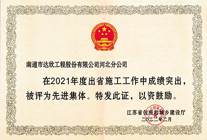 此外,第六黨支部被評為“2021年度江蘇進津冀施工優(yōu)秀黨組織”,楊靜、徐培華、吉順祥同志被評為“2021年度江蘇省出省施工先進個人”,徐仁忠同志被評為“2021年度江蘇進津冀施工先進企業(yè)經(jīng)理”,謝廣財同志被評為“2021年度江蘇進津冀施工優(yōu)秀黨務(wù)工作者”,郝路同志被評為“2021年度江蘇進津冀施工優(yōu)秀共產(chǎn)黨員”,王順乾、高云青、王愛軍同志被評為“2021年度江蘇進津冀施工優(yōu)秀建造師”,朱玉平、劉剛、張生同志被評為“2021年度江蘇進津冀施工先進工作者”等榮譽。