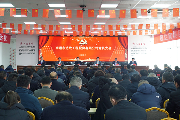 2月17日上午,集團在黨群活動中心召開2024年黨員大會。選舉產生了中共南通市達欣工程股份有限公司新一屆黨委和紀委領導班子。海安市委常委、高新區黨工委書記郝三旺,海安市委組織部常務副部長、“兩新”工委書記、黨建辦主任吳蘭,高新區黨工委副書記曹驥,胡集街道黨工委書記孫堅等領導親臨現場指導。