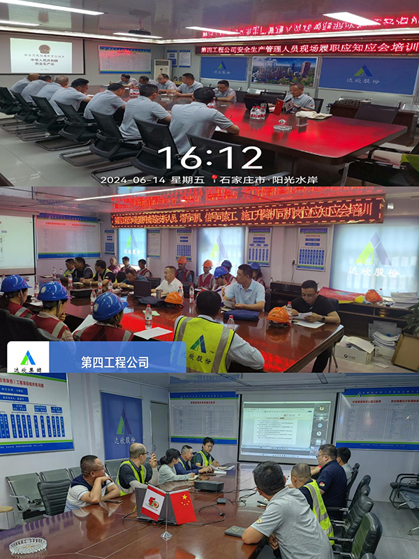 6月14日-6月19日,第四工程公司分別通過線上和線下相結(jié)合的方式,先后對安全生產(chǎn)管理人員、技術(shù)質(zhì)量人員、現(xiàn)場特種工種人員進行了履職崗位“應(yīng)知應(yīng)會“培訓(xùn)。