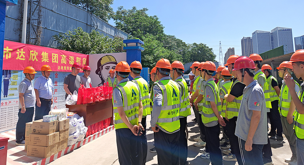 烈日炎炎,熱浪滾燙,持續的高溫天氣拉開了項目“戰高溫,斗酷暑,保安全,保質量,保進度”的進程,一線員工們立足崗位,奮戰高溫。第十工程公司總經理曹陸、副總經理曹伍群親自為云墅府項目奮斗在一線的職工們,送上來自集團工會的高溫清涼物資和慰問。集團工會委員徐祝軍、時紅翔等參加活動。
