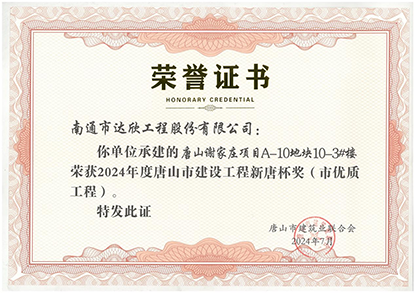 近日,由第六工程公司承建的唐山謝家莊項目A-10地塊10-3#樓、唐山謝家莊項目A-14地塊14-3#樓、14-5#樓榮獲“2024年度唐山市建設工程新唐杯獎(市優質工程)”。