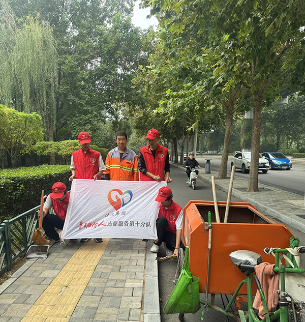 9月26日下午,達欣集團•魯班傳人志愿服務隊第十分隊在邵鵬偉的帶領下走到街區,與環衛工人一起清掃街道。