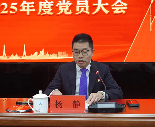 楊靜對預備黨員轉正、新接收的預備黨員、黨員“雙評”以及各黨支部換屆情況進行了通報。他指出,全體黨員要在上級黨委和集團黨委的帶領下,堅持以習近平新時代中國特色社會主義思想為指導,認真學習貫徹黨的二十大和二十屆二中、三中全會精神,堅決貫徹堅定不移全面從嚴治黨戰略部署,認真落實全面從嚴治黨體系任務要求,恪守講政治、知敬畏、守規矩的黨性操守,煥發敢為、敢闖、敢干、敢首創的精神狀態,以堅如磐石的信念、堅韌不拔的毅力和只爭朝夕的緊迫感,在工程款清收清欠、市場經營開拓、項目精準管控、數字化智能建造等各個方面發揮黨員先鋒模范作用。