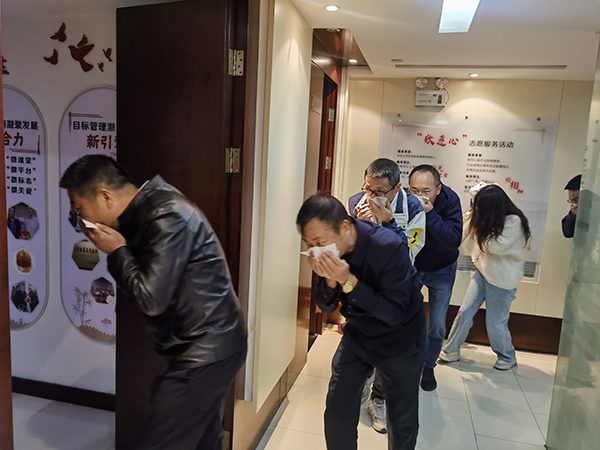 本次演練由滅火行動組(質(zhì)量安全部門)、通信聯(lián)絡(luò)組(辦公室)、疏散引導(dǎo)組(核算部門)、安全防護救護組(財務(wù)部門)組成,陳元國為現(xiàn)場執(zhí)行指揮。他強調(diào),一是牢記疏散路線,清楚安全出口和通道位置,不乘電梯、不貪戀財物;二是熟練使用消防器材,掌握滅火器和消防栓操作;三是強化應(yīng)急意識,發(fā)現(xiàn)火情及時報警并報告物業(yè)安保,做到“早發(fā)現(xiàn)、早報警、早處置”。在大家配合下,演練圓滿完成。