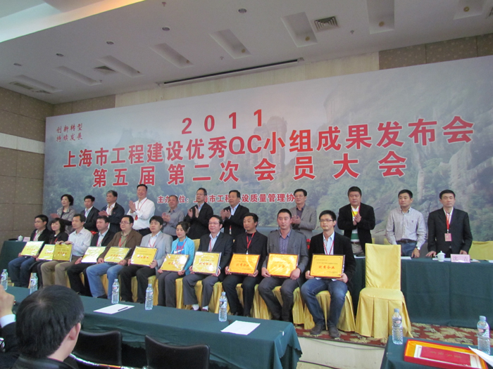 4月17日上海市工程建設質量管理協會召開2011年建設工程優秀QC小組活動成果發布會暨第五屆第二次會員大會。第一工程公司選送的 “攻克3m厚大體積砼底板裂縫”、“提高施工現場安全達標優良率”、“推行‘四節一環保’有效降低工程成本”、“提高建筑幕墻工程的施工質量”、“有效控制填充墻內混凝土構造柱裂縫”、“有效控制斜屋面混凝土施工質量”、“提高YTONG砂加氣砼砌塊砌筑合格率”、“有效提高模板工程施工質量”、“降低明珠城三期工程鋼筋損耗”等九項QC成果均參加本次活動的發布與交流。這次江蘇省在滬企業參加QC成果發布、交流共83篇,我公司就占據其中的14%,得到了駐滬辦領導的充分肯定。工程公司也被上海市工程建設質量管理協會評為2011年上海市建設質量管理小組活動優秀企業。