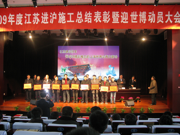 三月十日,江蘇省人民政府駐滬辦、江蘇省建筑工程管理局在上海隆重召開了2009年進滬施工總結(jié)表 彰大會,出席大會的有江蘇省建設(shè)廳副廳長、省建管局局長徐學軍、上海市建交委沈主任、建管辦曾主任 、上海市施工行業(yè)協(xié)會高秘書長、省人民政府駐滬辦陳主任、王處長等領(lǐng)導,會上對進滬施工先進企業(yè)、 先進個人進行了頒獎,我公司作為先進企業(yè)的代表上臺領(lǐng)獎,這是公司連續(xù)三年獲此榮譽。近幾年達欣公 司在強手如林的上海市場占得了一席之地,同時公司在上海開拓性的發(fā)展也得到了江蘇省、上海市建設(shè)主 管部門的充分肯定。