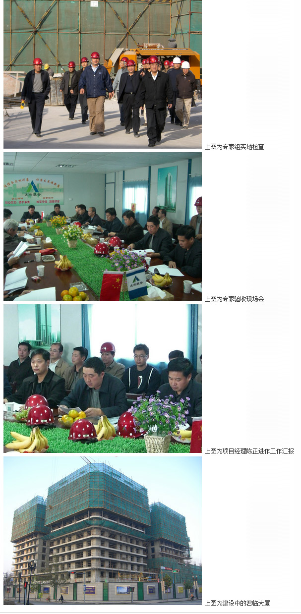 按照天津市建委[2006]第591號文件要求,所有超大型和結構復雜的工程項目的各分部工程結構質量必須經市建委的專家組進行驗收和評定。2007年10月19日,我天津君臨大廈工程(檐高230米,建筑面積22.9萬平方米)由市建委派出的五名專家和市質檢總站及該工程的五方責任主體單位共同對該工程的基礎分部工程進行了檢查和驗收評定。