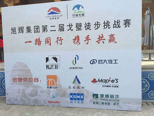 金秋十月,在舉國同慶的日子里,9月30日至10月4日旭輝集團組織了第二屆戈壁徒步挑戰賽活動,由16支代表隊160余人組成,第八工程公司總經理李向東同志作為金牌供應商代表有幸參加了此次活動。