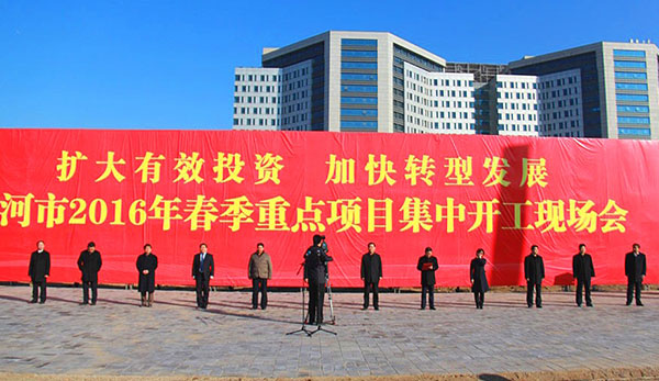 2月29日上午9點,三河市委、市政府領導一行在燕郊燕達金色年華健康養護中心二期工地現場,隆重舉行全市重點項目集中開工儀式暨燕達金色年華健康養護中心二期項目奠基儀式。